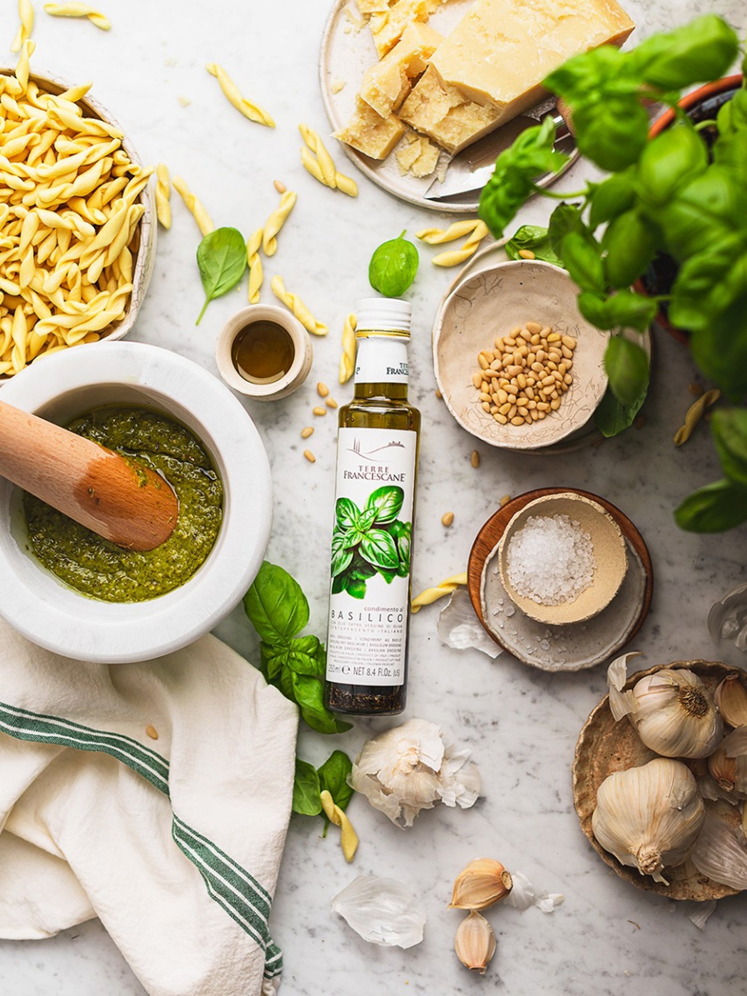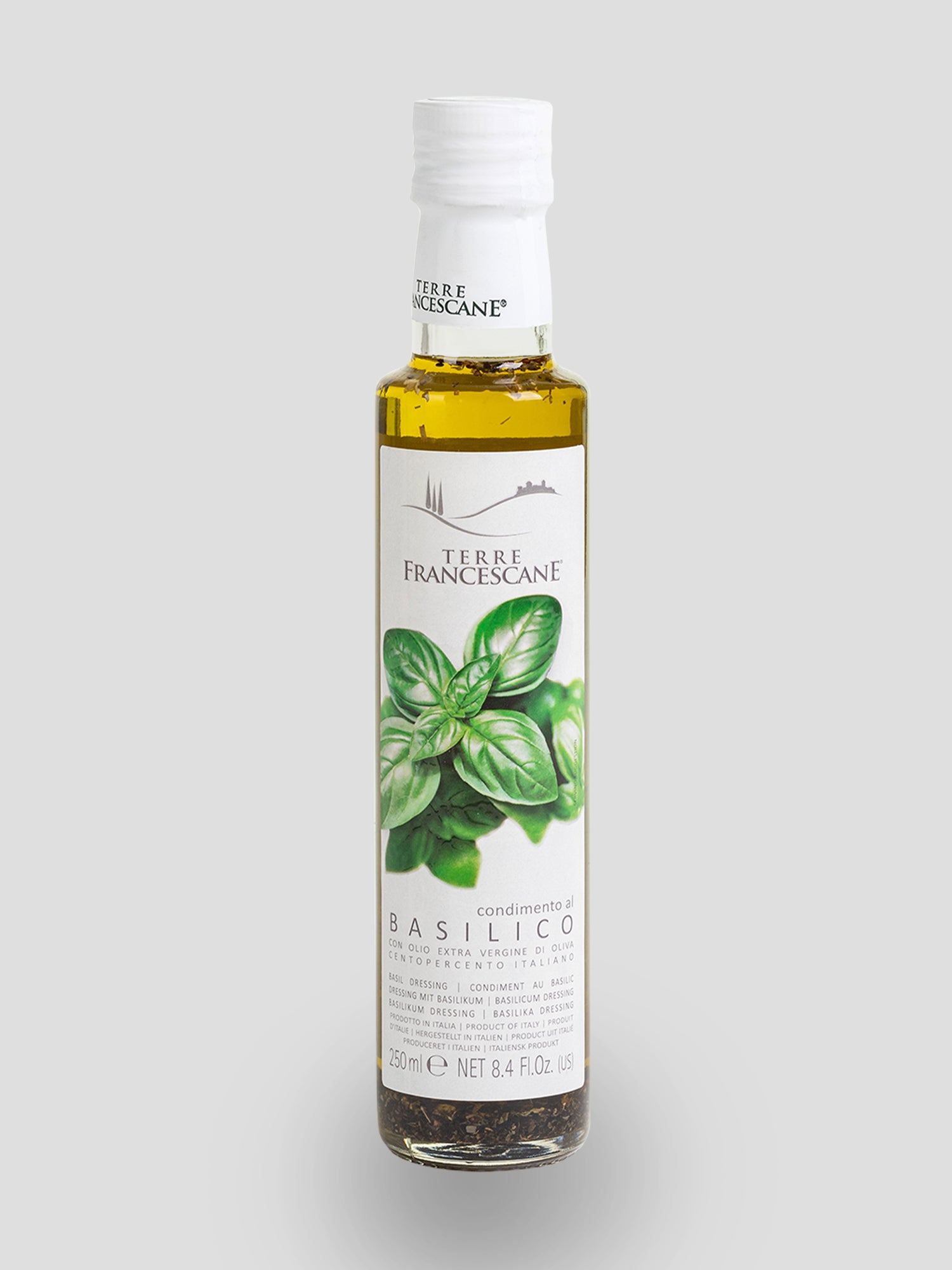 This dressing is made with certified Italian extra virgin olive oil infused with natural basil leaves. The process preserves the herb’s green, peppery notes and vibrant aroma.